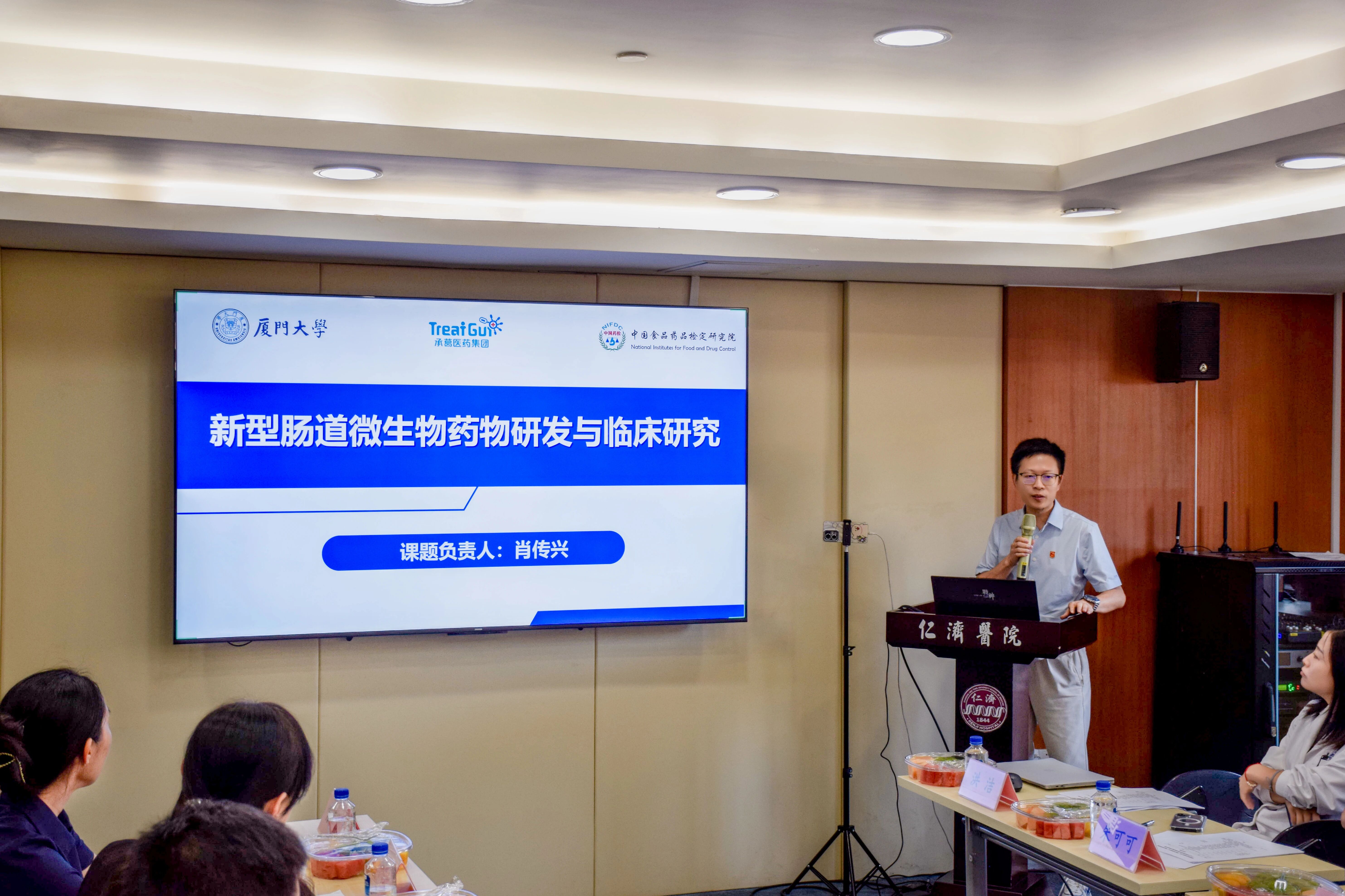 課題五負(fù)責(zé)人、承葛醫(yī)藥集團(tuán)董事長肖傳興博士詳細(xì)匯報(bào)了新型腸道微生物藥物研發(fā)與臨床研究的實(shí)施方案,明確了研究目標(biāo)、技術(shù)路徑及預(yù)期成果,展現(xiàn)了承葛醫(yī)藥集團(tuán)作為課題牽頭單位的研發(fā)實(shí)力與轉(zhuǎn)化決心。