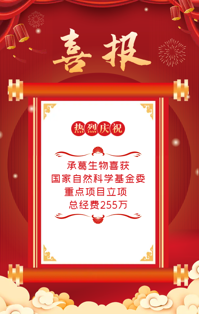 重磅消息:近日,廈門承葛生物科技有限公司(簡稱”承葛生物“)申報的項目“基于中醫(yī)狀態(tài)學原理探討腸道菌群移植對2型糖尿病的干預作用及舌苔變化的生物效應(yīng)機制”(項目批準號:U22A20376),獲得國家自然科學基金委聯(lián)合基金重點支持項目的資助。該項目總經(jīng)費255萬元,由我司與福建中醫(yī)藥大學和廈門大學共同承擔。
